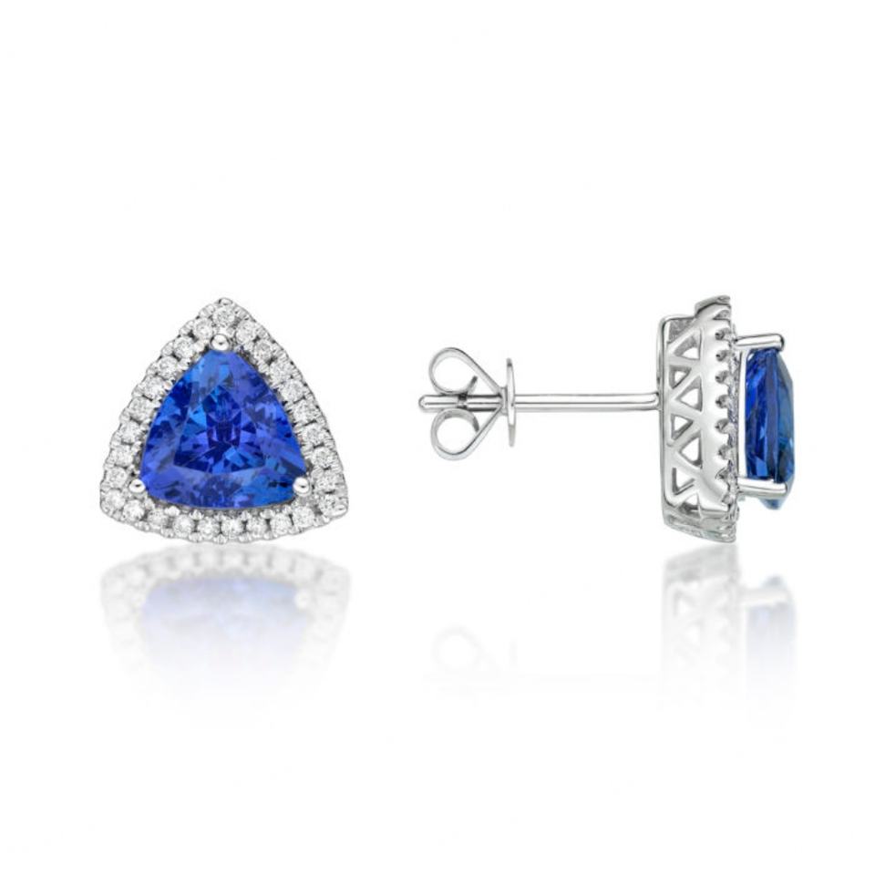 925 Sterling Silver Halo Tanzanite Earrings Jewelry CZ Trillion Cut Tanzanite Diamond Halo Earrings