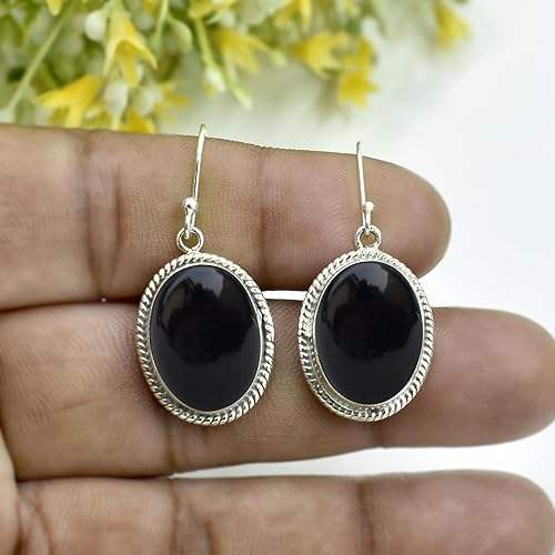 925 Sterling Silver Handmade Black Onyx Dangle Earrings Natural Gemstone Oval Shape Hoops Daily Wear Wholesale Fashion Jewelry
