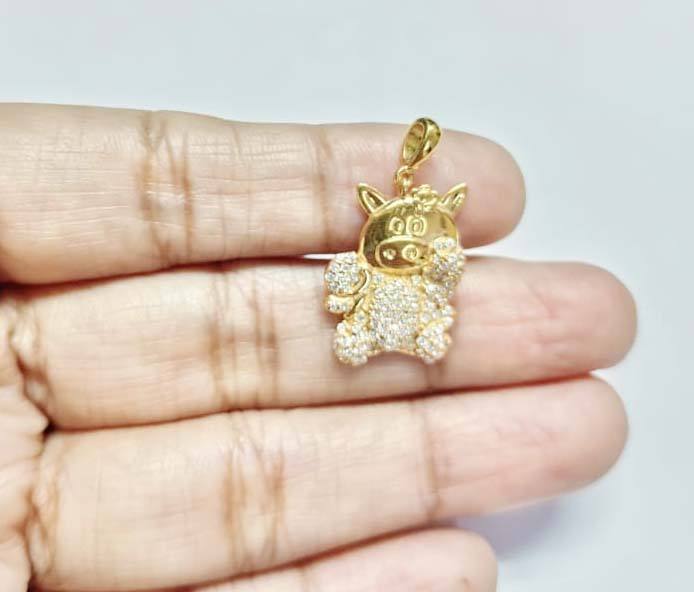 925 Sterling Silver Handmade Cubic Zirconia Lucky Pig Charm Pendant Jewelry Gift