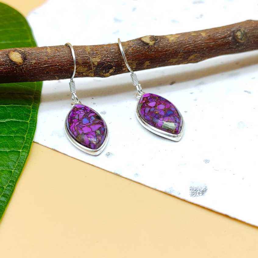 925 Sterling Silver Handmade Earrings Marquise Shape with Purple Copper Turquoise and Pearl Fine Silver Jewelry for Wholesale