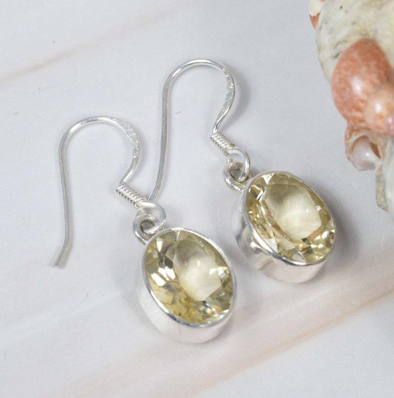 925 Sterling Silver Handmade Fine Dangle Earrings Oval Shape Natural Citrine Faceted Gemstone Gold Wedding February Birthstone