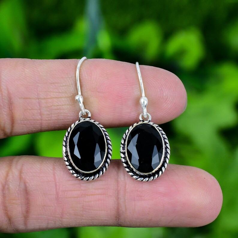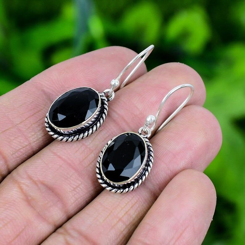 925 Sterling Silver Handmade Gemstone Black Onyx Earrings for Women Girls Best Quality Designer Wedding Gift Dangle Earrings