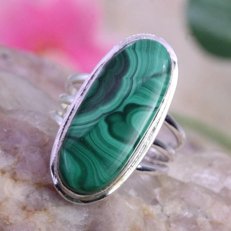 925 Sterling Silver Handmade Gemstone Spinner Malachite Perfect Promise Silver Ring Solid Green Ring Fine Jewelry for Gift Ring