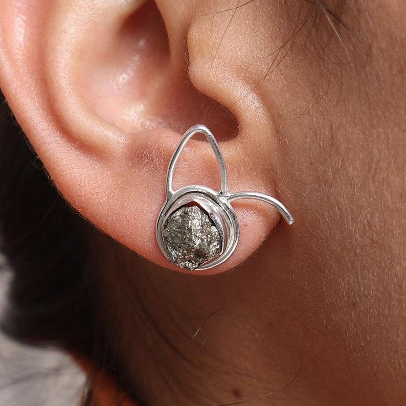 925 Sterling Silver Handmade Gemstone Spinner Pyrite Drugi Drop Earrings Women Girl Best Quality Jewelry