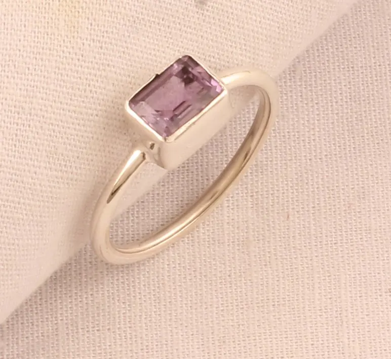 925 Sterling Silver Handmade Ring Natural Amethyst Emerald Cut Gemstone Jewelry Fashionable Ring Gift for Mother