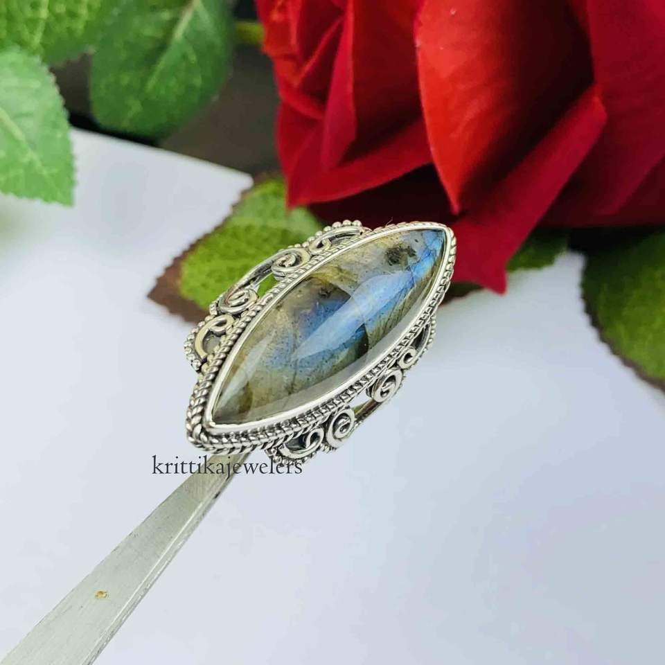 925 Sterling Silver Handmade Ring with Natural Labradorite Gemstone Classic Blue Fire Jewelry for Women for Weddings Parties