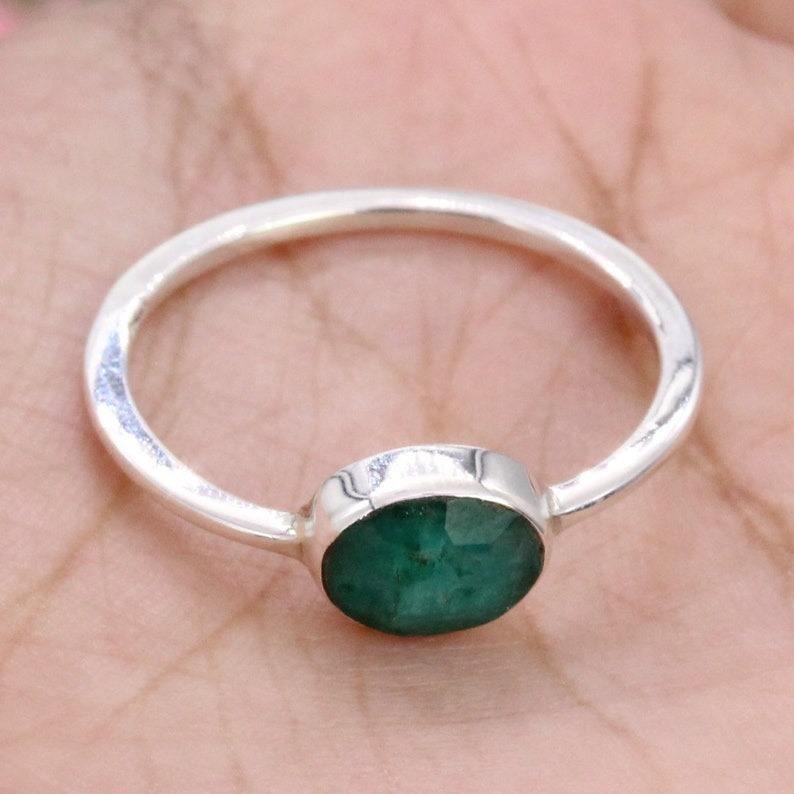 925 Sterling Silver Handmade Spinner Emerald Jewelry Ring Cabochon Gemstone Solid Best Quality 925 Stamped Natural Ring Jewelry