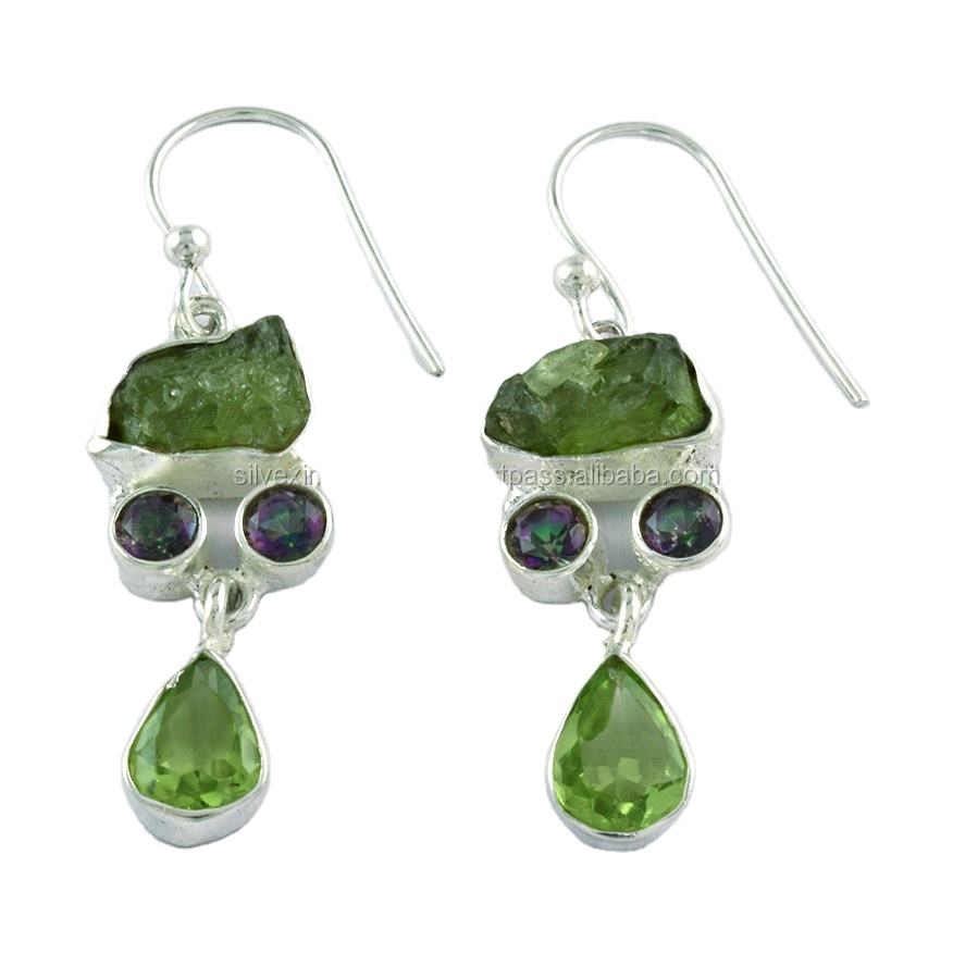 925 Sterling Silver Handmade Vintage Drop Earrings Multi Stone Wedding & Party Jewelry Supplier India