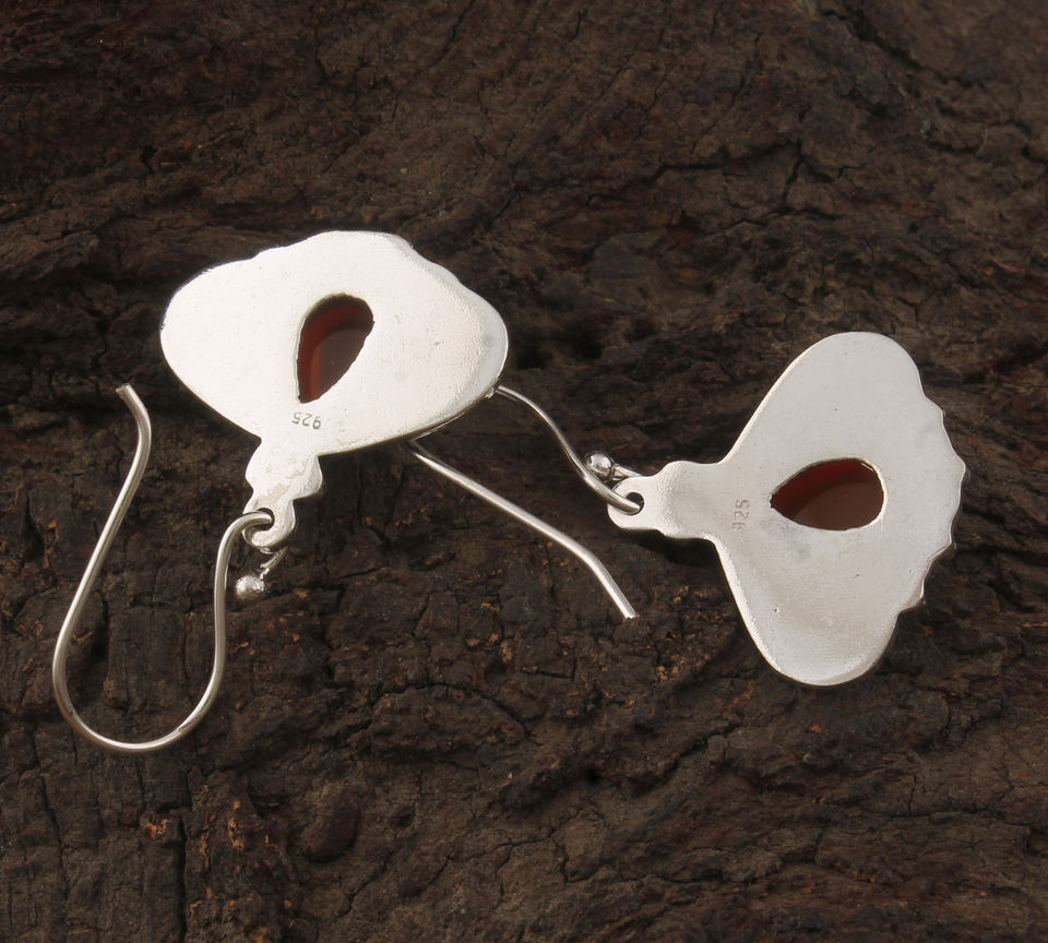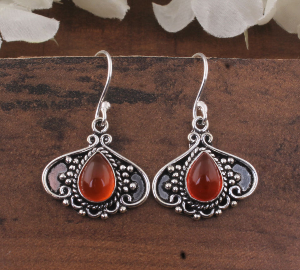 925 Sterling Silver Handmade Vintage Unisex Natural Red Onyx Drop Earrings for Wedding Anniversary Party