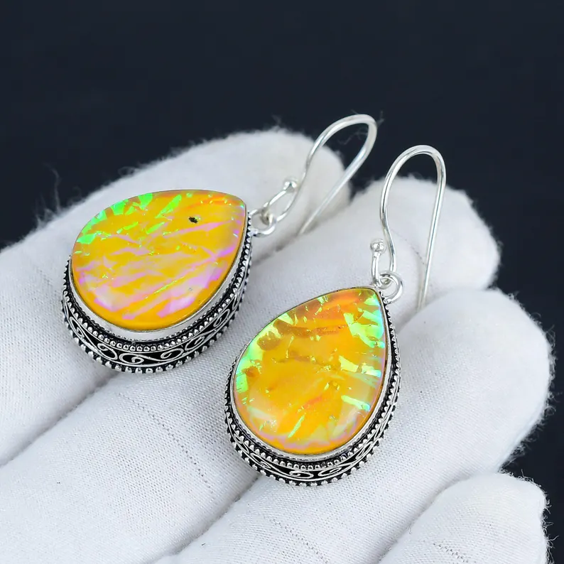 Product name:Yellow Triplet Fire Opal Earrings