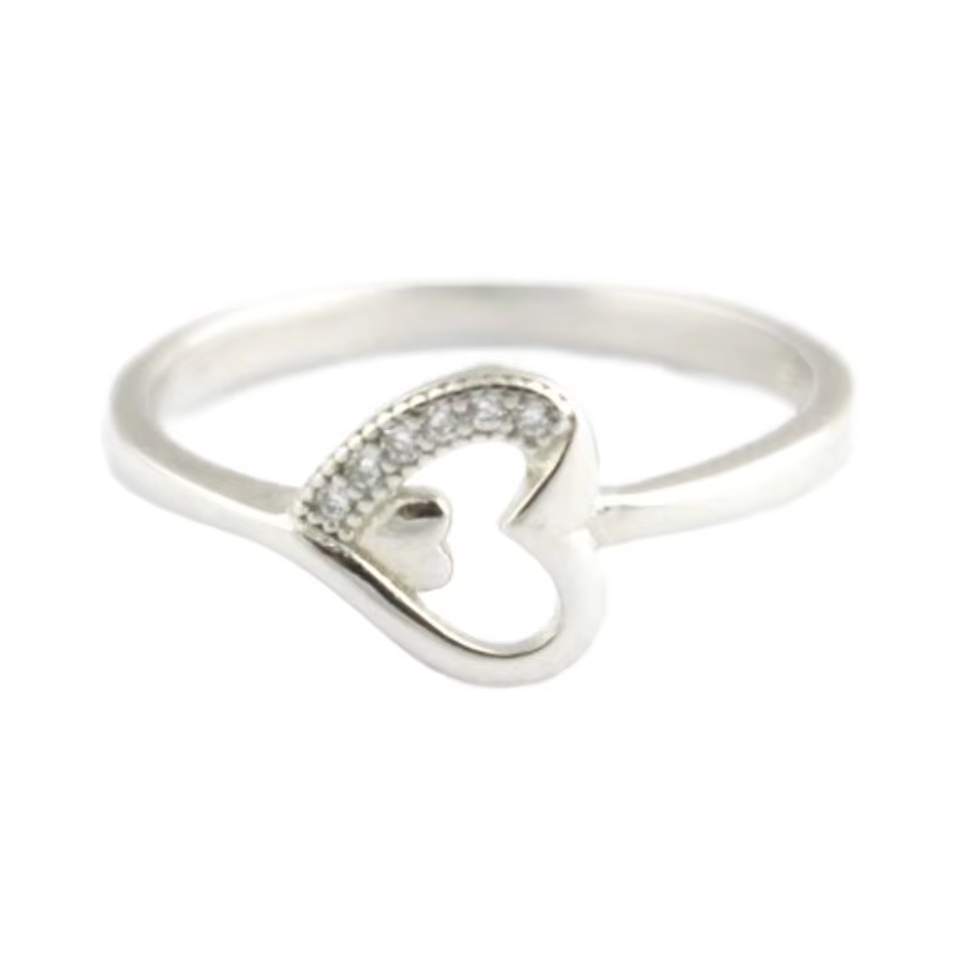 925 Sterling Silver Heart Dainty Cubic Zirconia Gemstone Promise Love Ring For Her