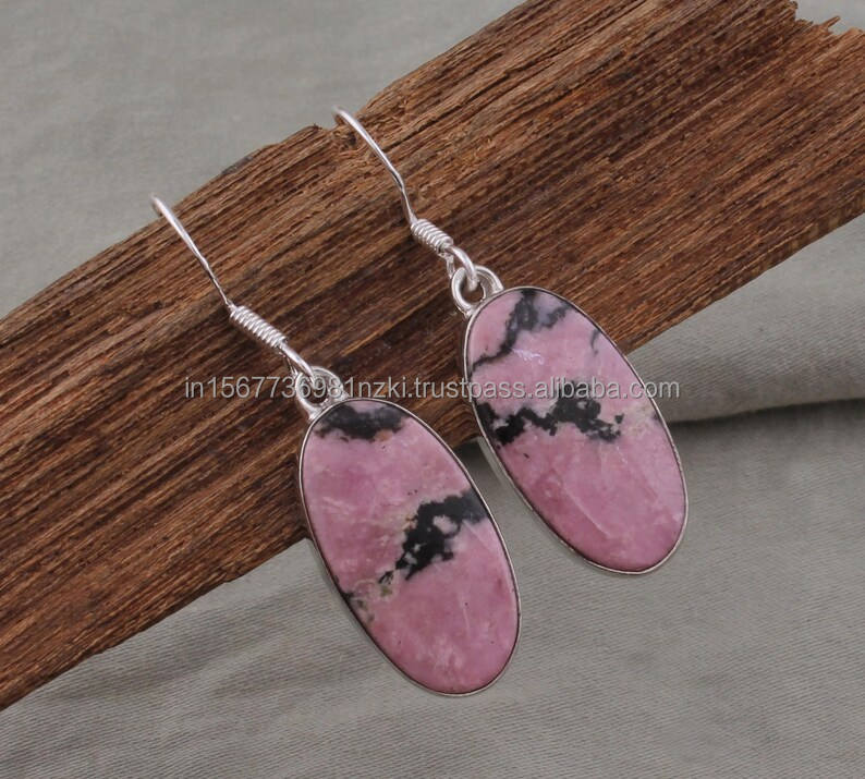 925 Sterling Silver Heart Shaped Dangle Drop Earrings for Women Trendy Rhodonite Christmas Wedding Gift for Her