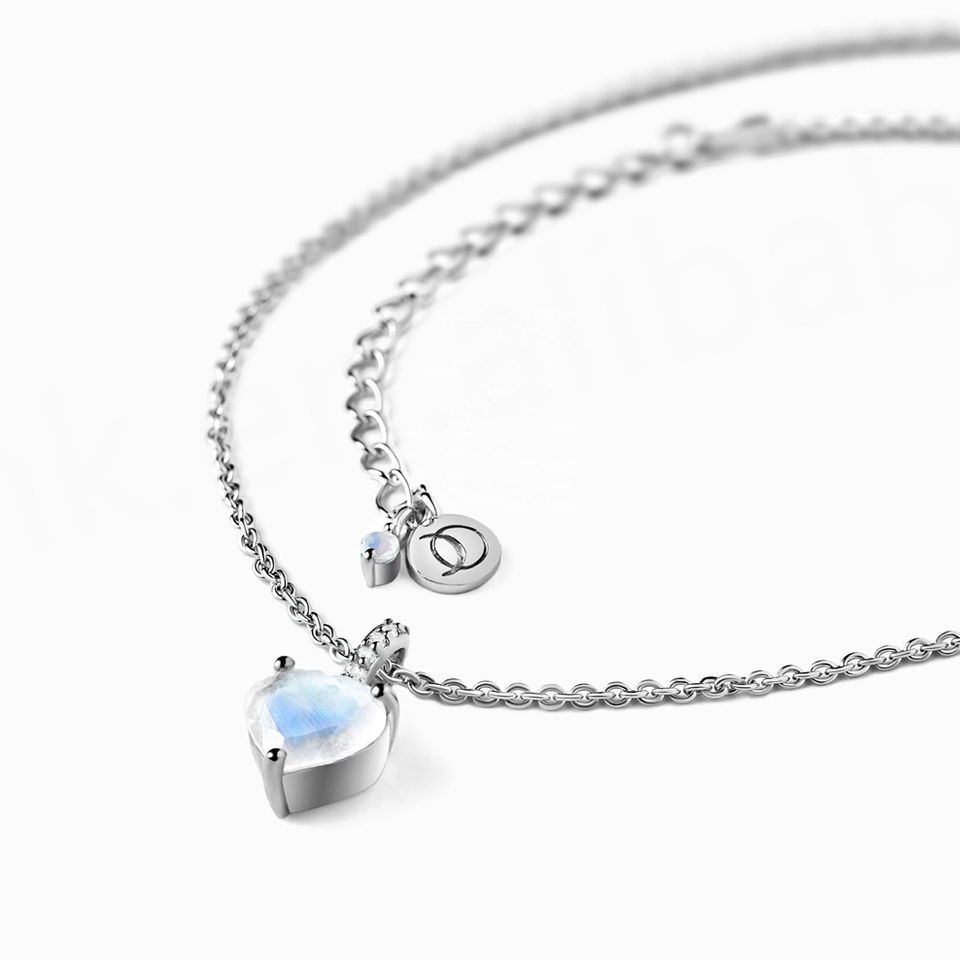 925 Sterling Silver Heart-Shaped Faceted Cut Blue Moonstone Pendant Necklace Elegant Engagement Jewelry for Women