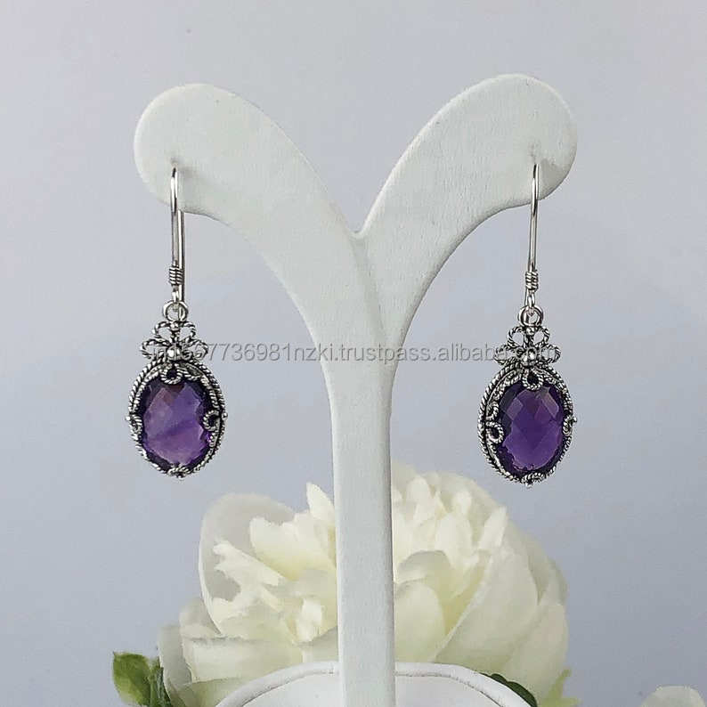 925 Sterling Silver Heart-shaped Dangle Drop Earrings Purple Stone February Birthstone Jewelry Wedding Gift for Her