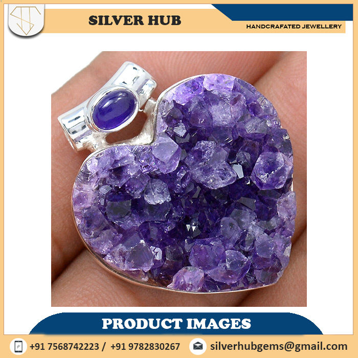 925 Sterling Silver High Quality Amethyst Druzy Pendant Heart Shape Bezel Setting OEM & ODM Wholesale Birthstone