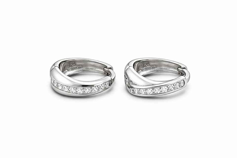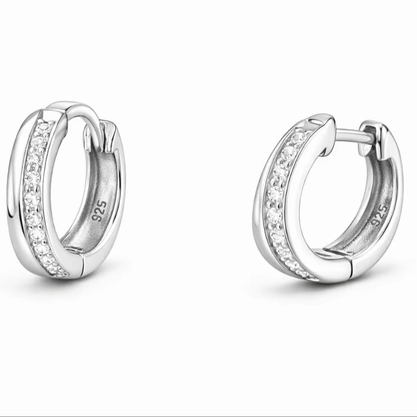 925 Sterling Silver Hoop Earrings Stone Studded Solid Silver Earrings for Men Women OEM Supplier DAILY WEAR PARTY WEAR