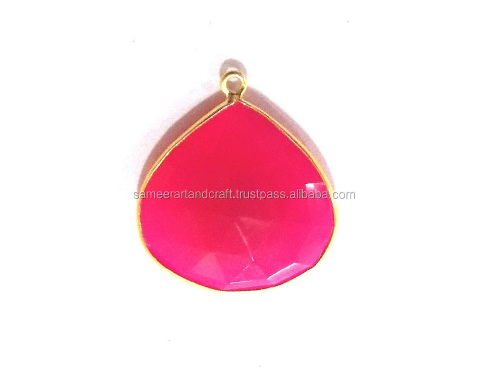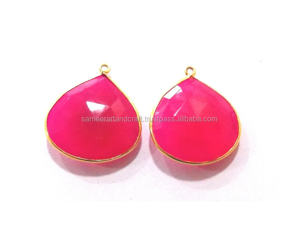 Product Name:Hot Pink Chalcedony Gemstone Bezel Connector Link-925 Sterlingsilver