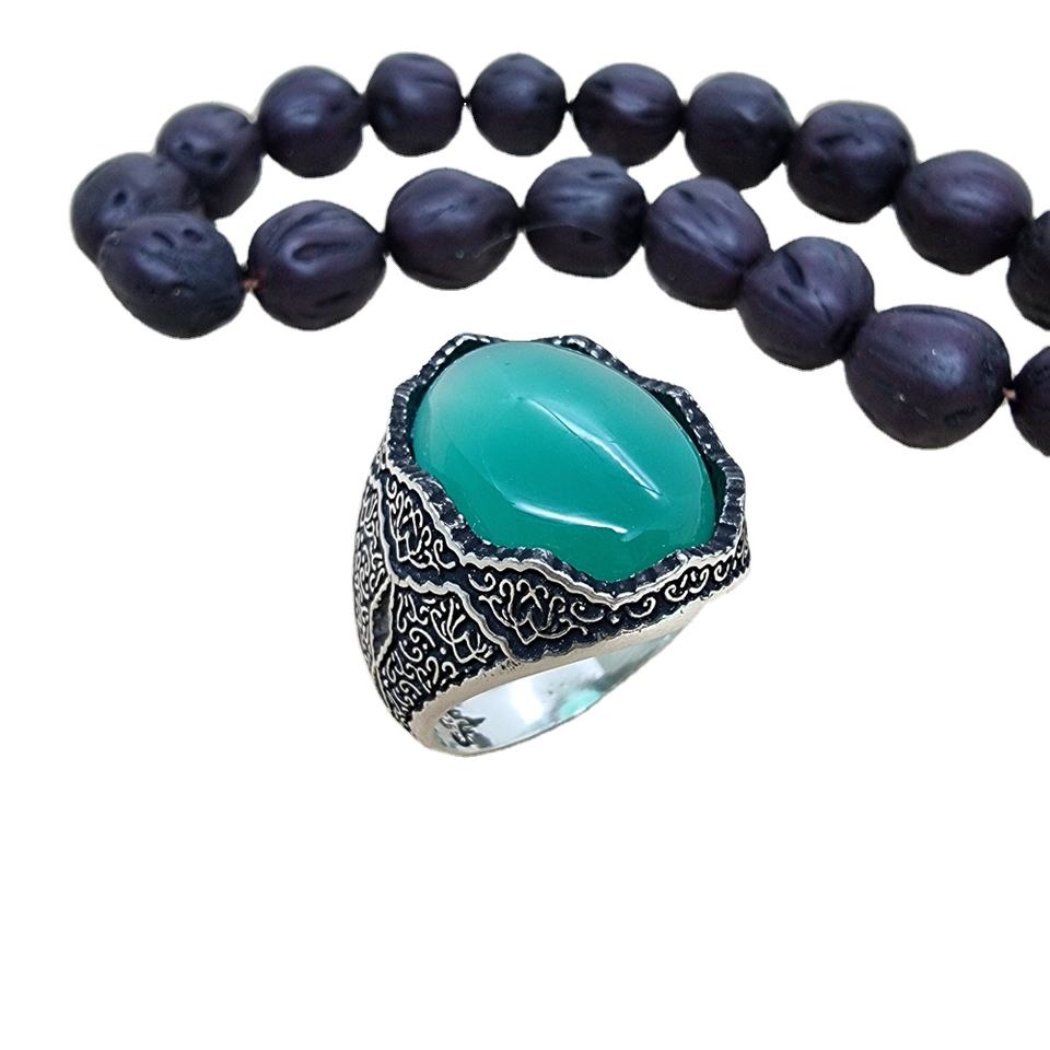 925 Sterling Silver Huge Green Agate Men Ring Turkish Handmade Ring for Men Ottoman Arabic Trendy Ring Accessories Gift for Man
