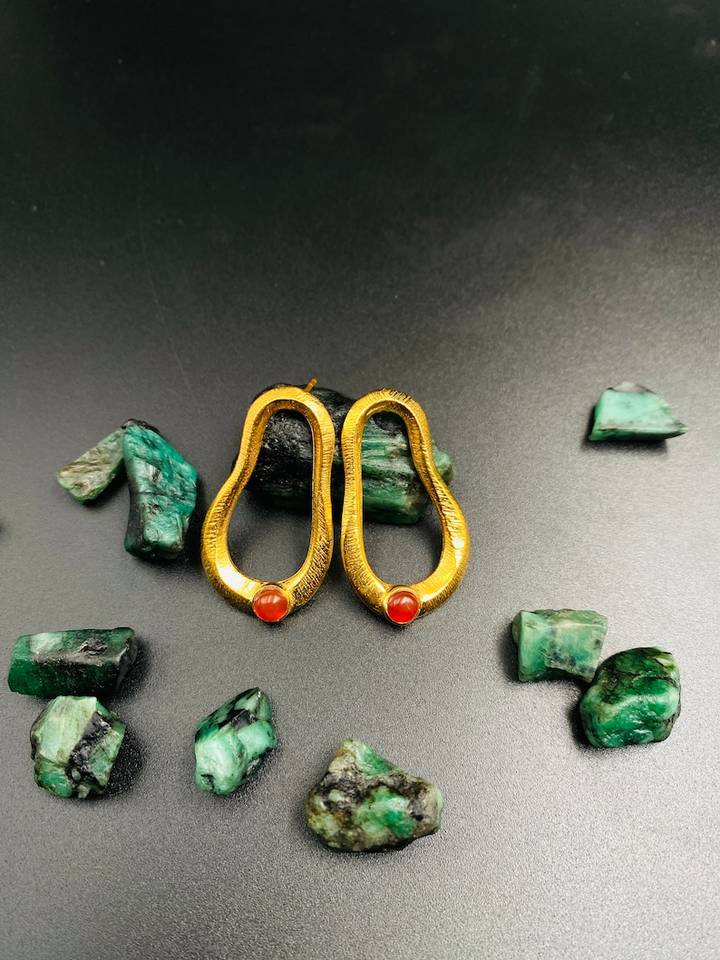 925 Sterling Silver Huggie Earrings Gold-Plated Carnelian with Haff Micron Stylish Jewelry for Birthday or Special Gift
