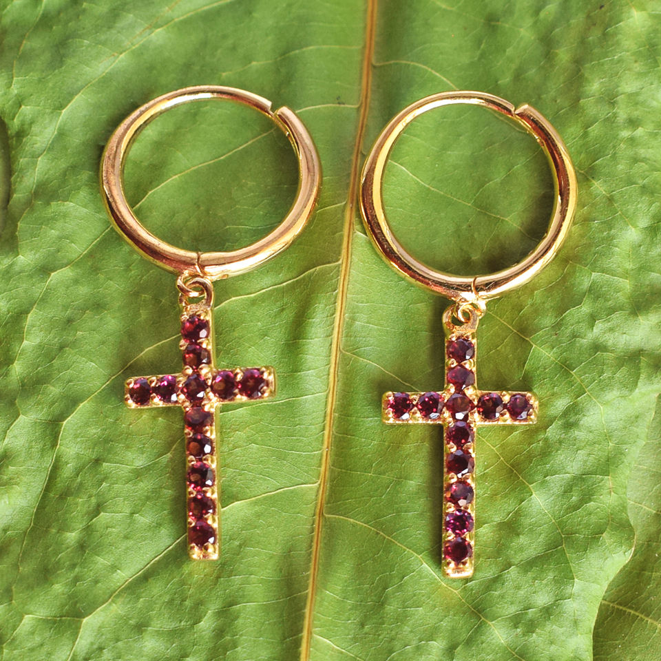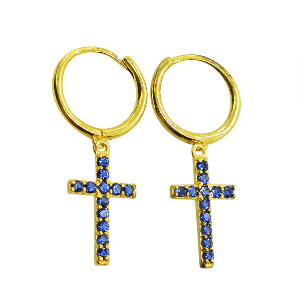 925 Sterling Silver Huggies Cross Earrings Blue Sapphire Gemstone Gold Rhodium Party Wear Jewelry for Weddings Direct