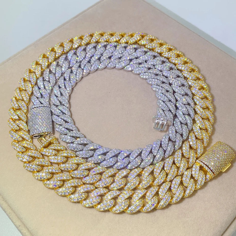 IGI Certified 925 Sterling Silver Solid Link Chain 14K White Gold Plated VVS Moissanite Diamond Cuban Style Hip Necklaces Fine