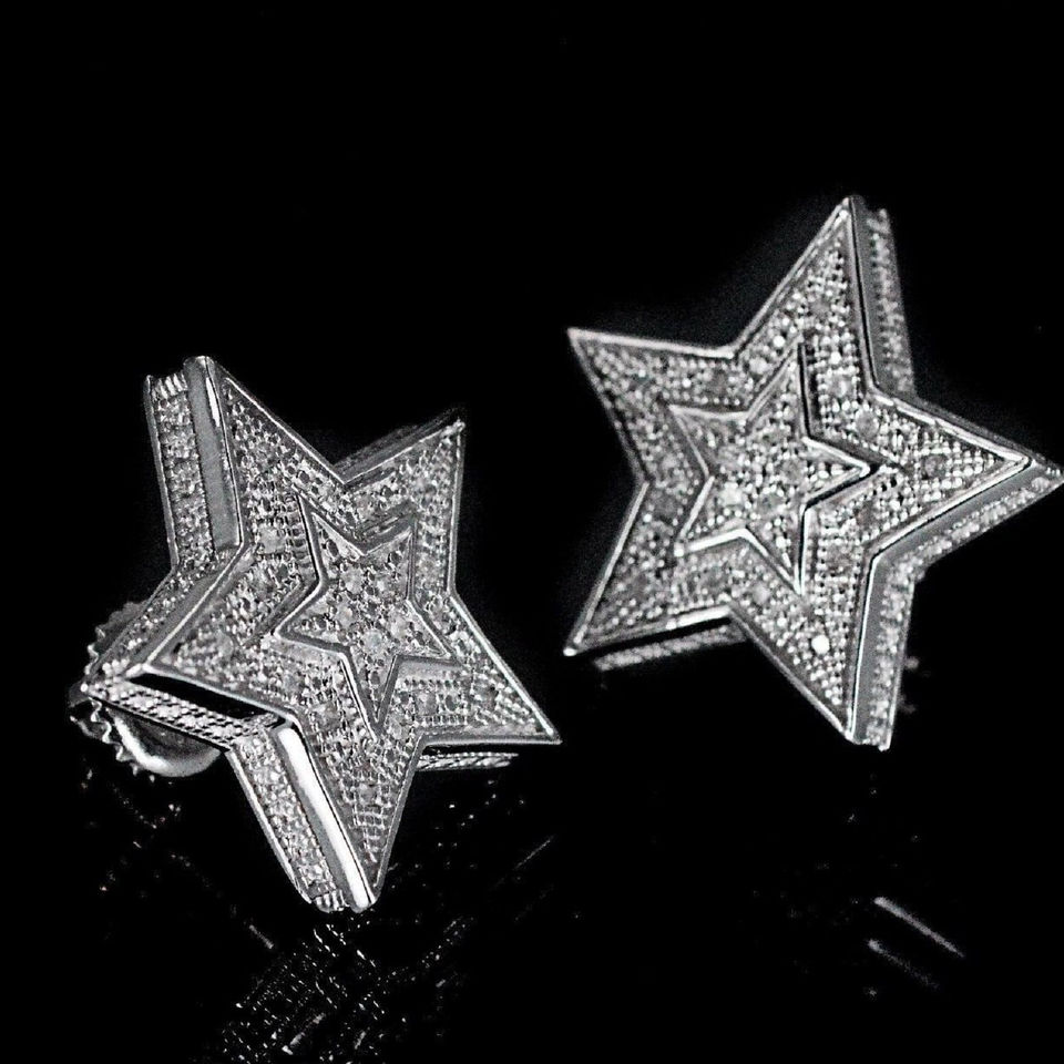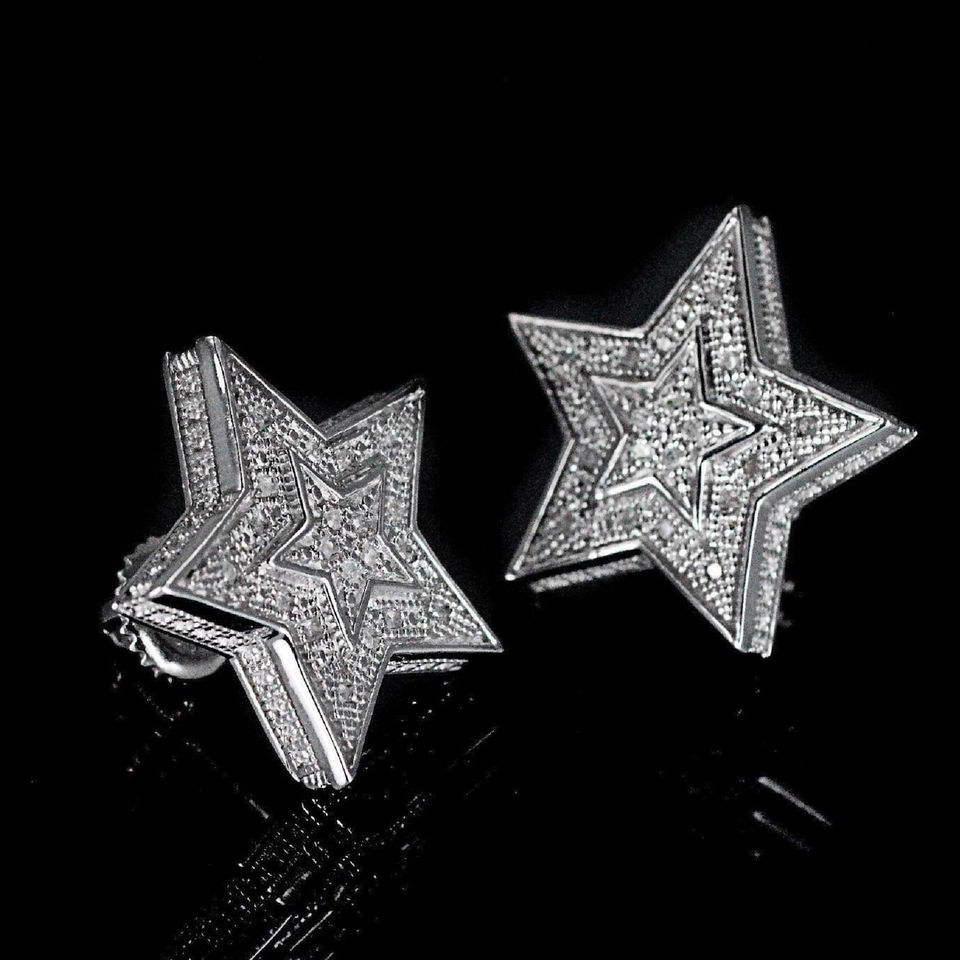 925 Sterling Silver Iced Moissanite Diamond Stud Earrings VVS Screw Back with Gold Plating Cute Style for Women's Gift