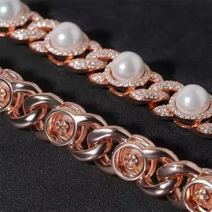 925 Sterling Silver Iced Out Moissanite Diamond Cuban Link Chain Customized Design with White Gold Material