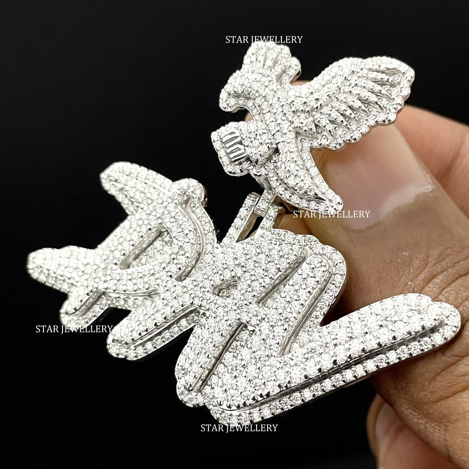 925 Sterling Silver Iced Out VVS Moissanite Custom Letter Pendant Hip Hop Style Rhodium Plated Unisex Party Jewelry