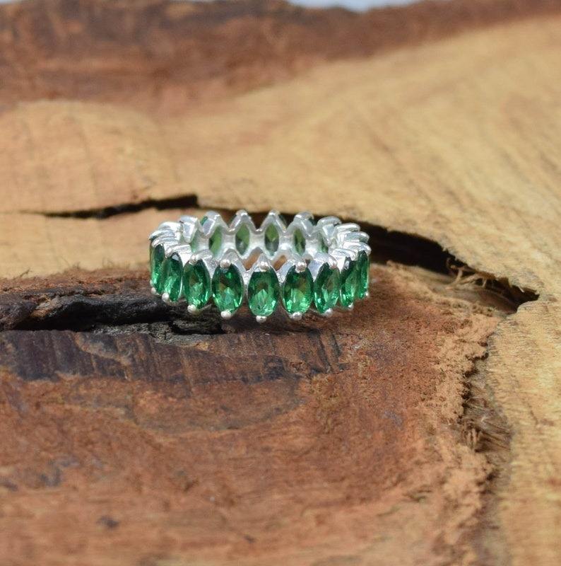 925 Sterling Silver Indian Best Quality Emerald Jewelry Handmade Spinner Ring Natural Gemstone Solid 925 Stamped Ring Jewelry
