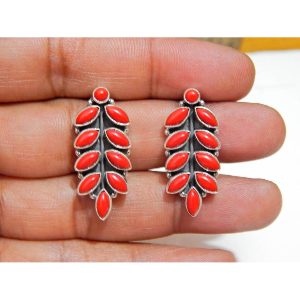 925 Sterling Silver Jewelry Earring Stud Handmade Coral Gemstone Girl Peaceful Shape Women's Gift-E0001-GS