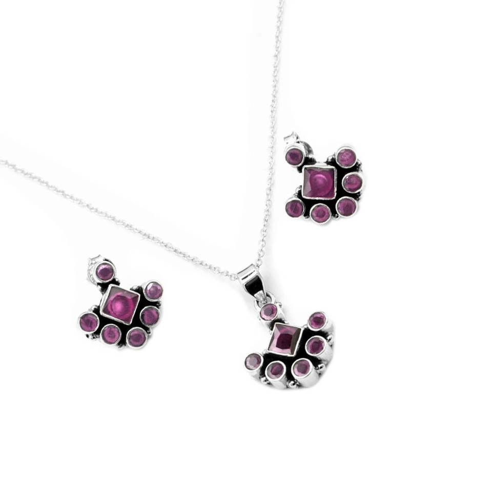 925 Sterling Silver Jewelry Set Natural Ruby Zircon Gemstone Floral Studs Floral Earrings and Necklace