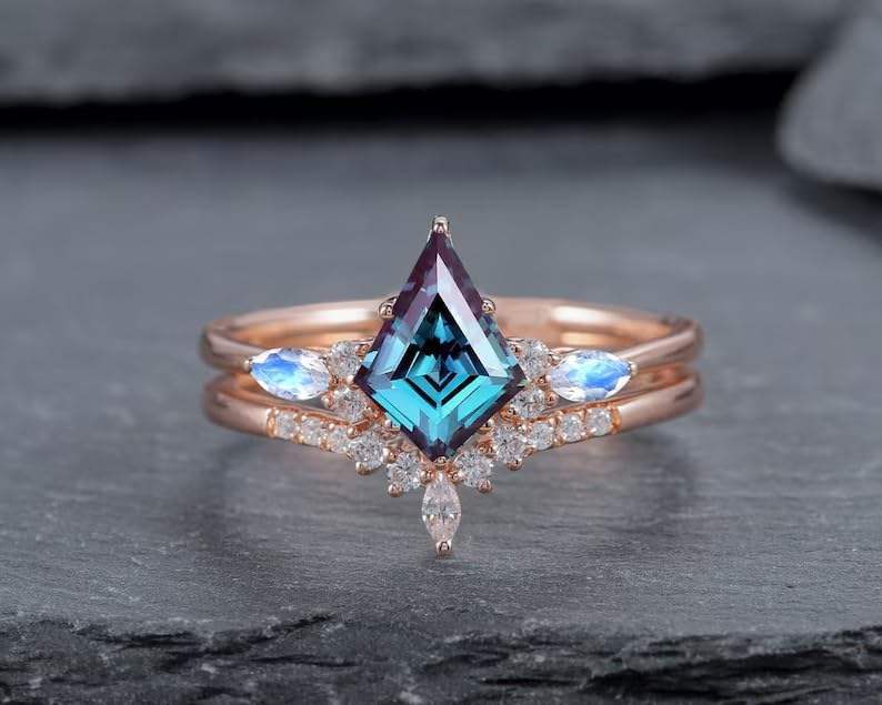 925 Sterling Silver Kite Cut Alexandrite Moissanite V Shape Rose Gold Moissanite Wedding Promise Engagement Ring