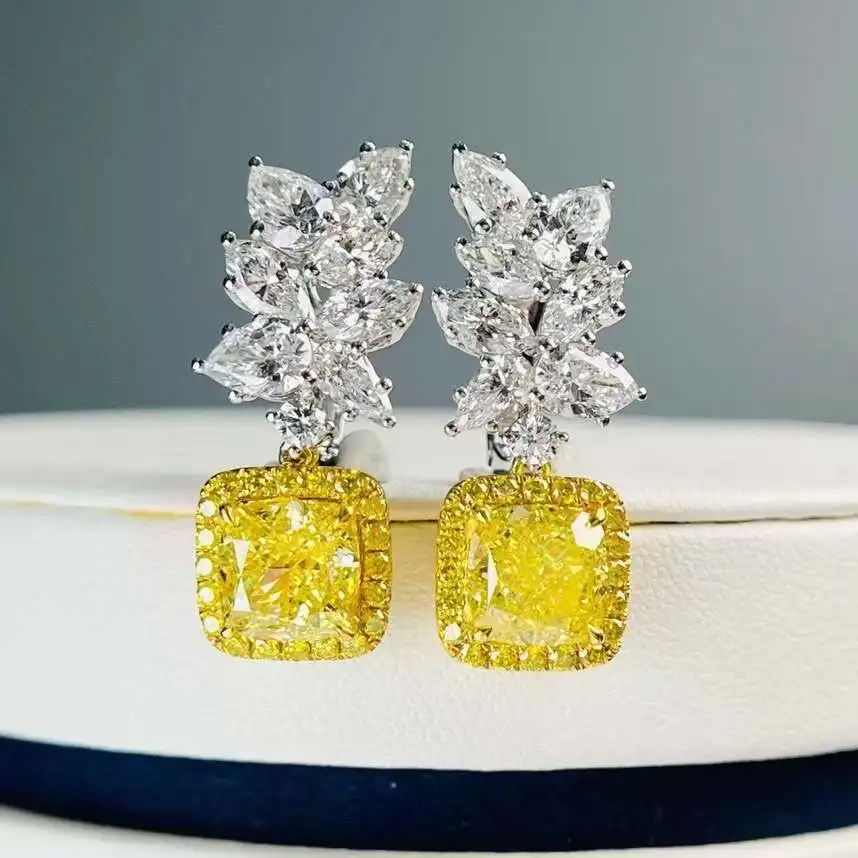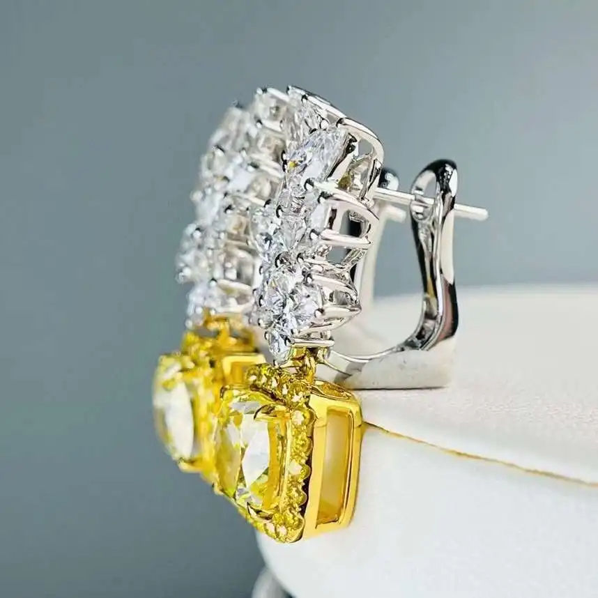 925 Sterling Silver Lab Grown Brilliant Cut Yellow Diamond Ear Ring Amazing Jewelry for Women's Wedding or Gift