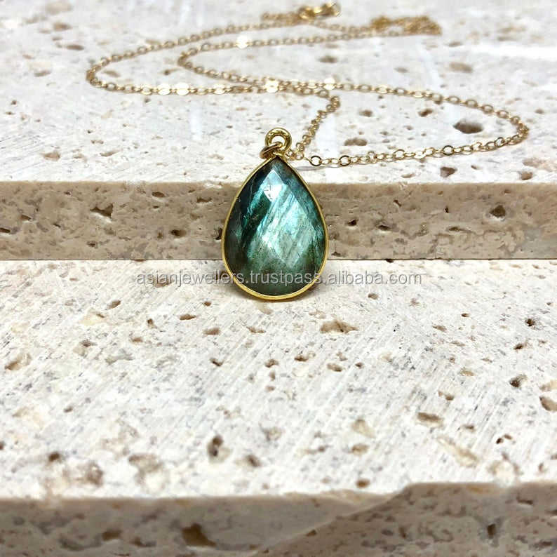 925 Sterling Silver Labradorite Gemstone Gold Plated Pendant Necklace