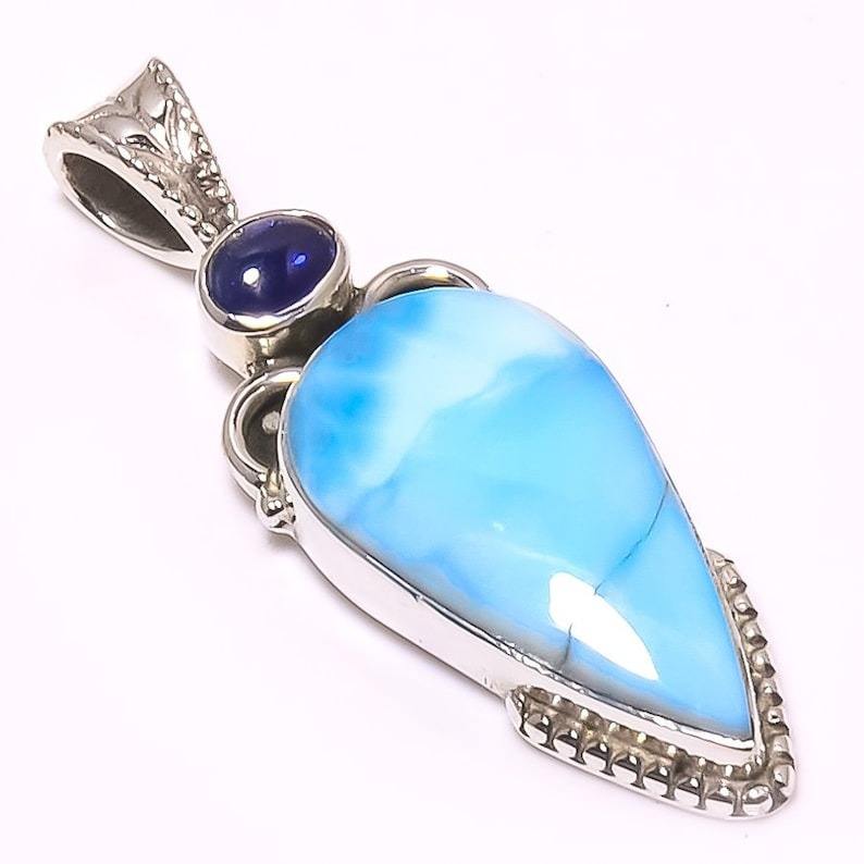 925 Sterling Silver Larimar Gemstone Pendant Jewelry Handmade Silver Boho Style Pendant Jewelry For Women Wedding Gift For Wife