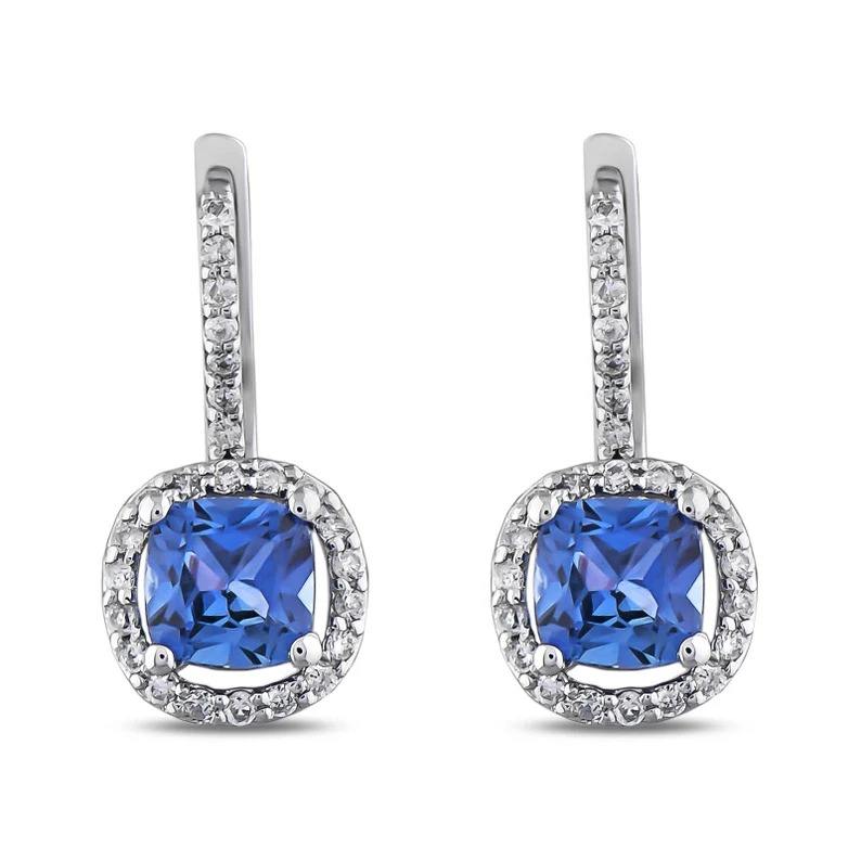 Product name:925 Sterling Silver Sapphire Light Blue Cushion Earrings