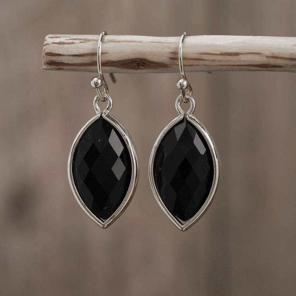 925 Sterling Silver Marquise Black Onyx Gemstone Bezel Earrings Women's Drop and Dangle Jewelry