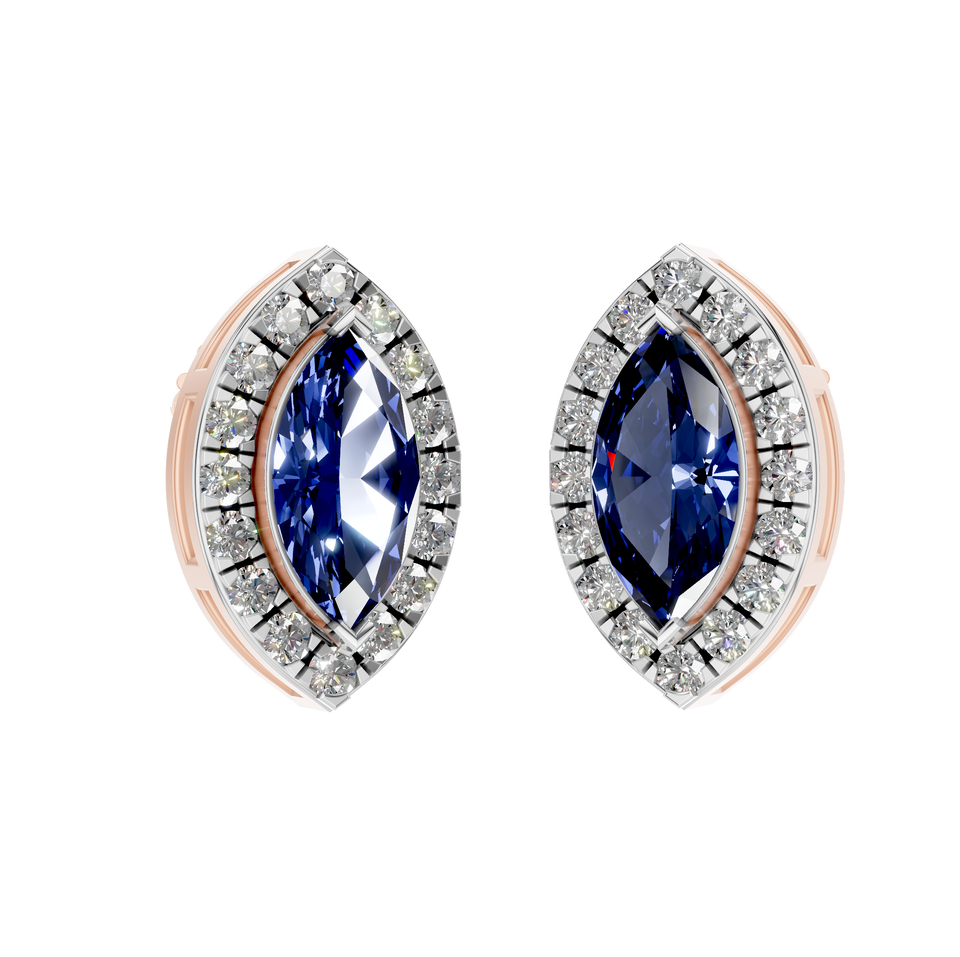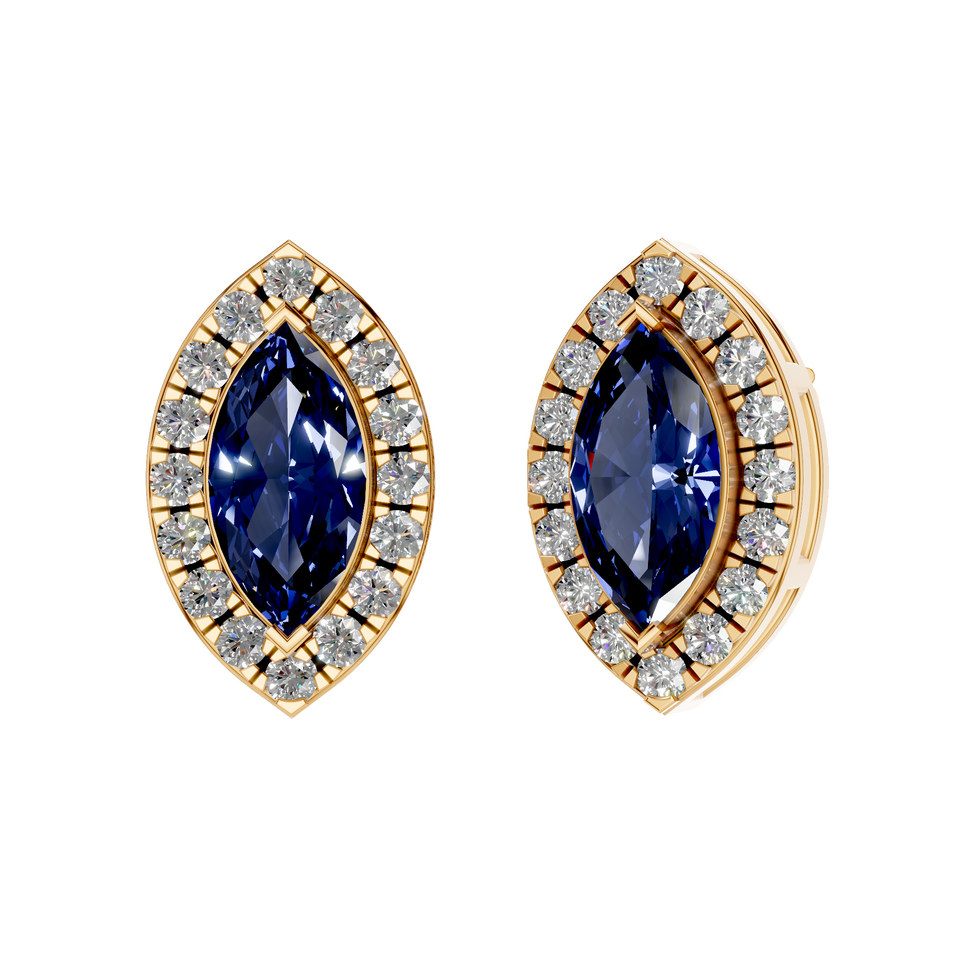 925 Sterling Silver Marquise Blue Stud Earrings VVS Moissanite Diamond Halo Trendy Custom Fine Jewelry for Wedding Gifts OEM ODM