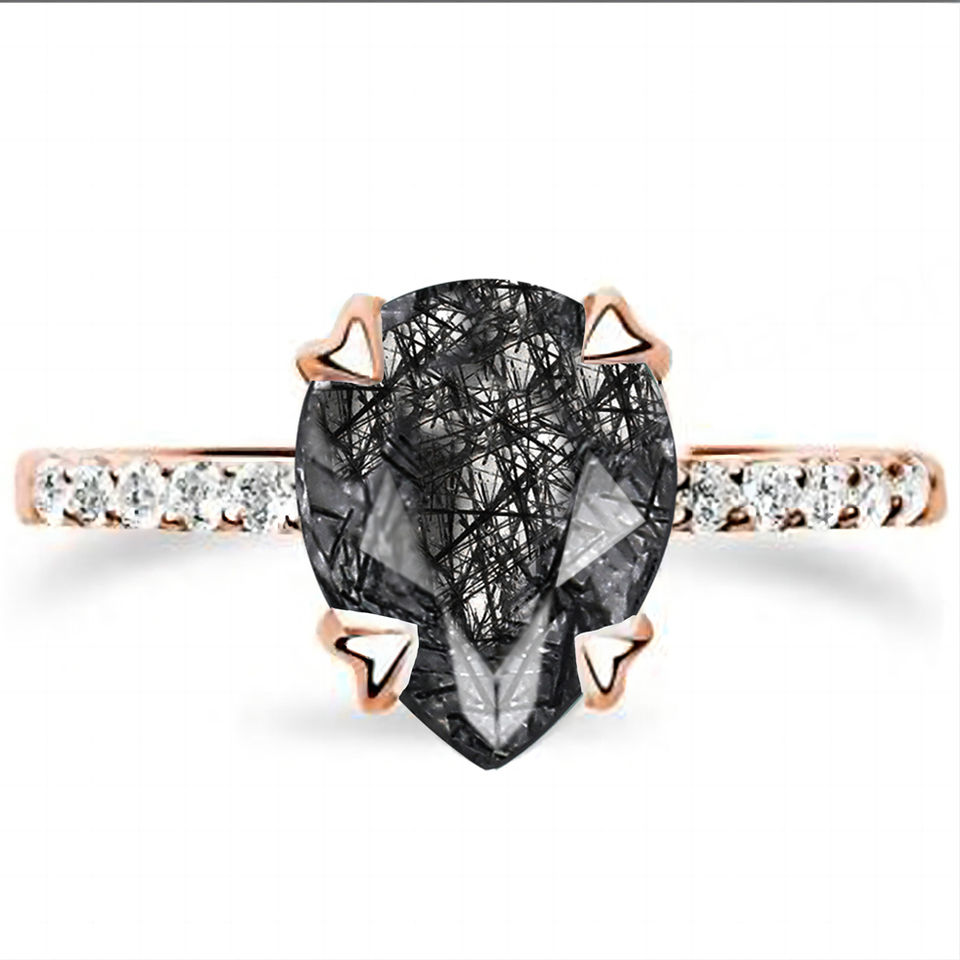 Black Rutilated Quartz RingInlay technology