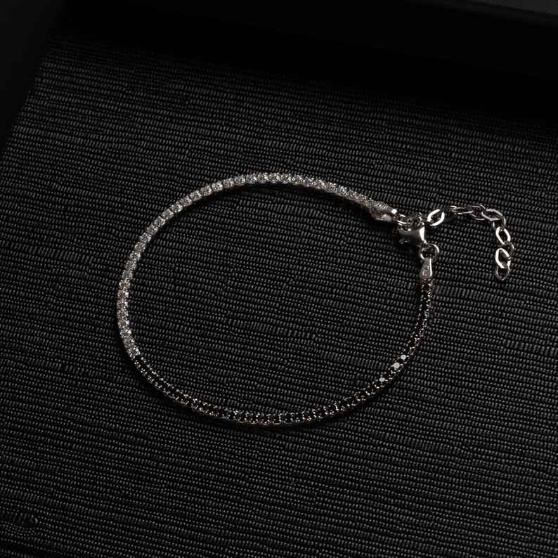 925 Sterling Silver Men's Tennis Bracelet With 2mm Black & White Zircon Stones, Elegant Design, Adjustable Fit, Gift For Him