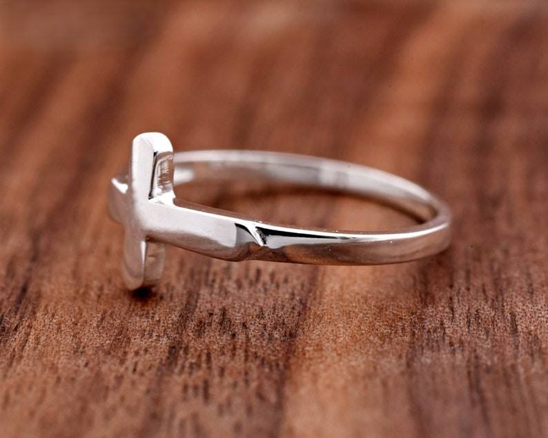 925 Sterling Silver Minimalist Cross Ring Simple Sideways Christian Faith Symbol Band Perfect Fine Jewelry Christmas Gift for