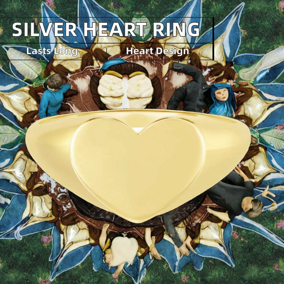 925 Sterling Silver Minimalist Jewelry Trendy Plain Golden Heart Signet Pinky Ring Bridesmaid Weddings Engagements Parties Gifts