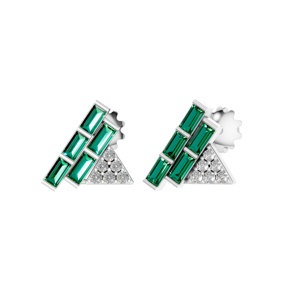 Style:Modern Geometric Emerald Gemstone and Diamond Stud Earrings
