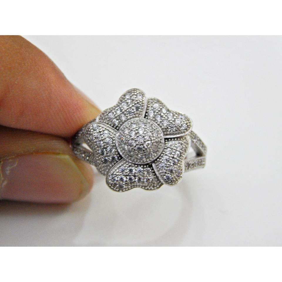 925 Sterling Silver Minimalist Wedding Ring with Cubic Zirconia Handmade Flower Design Gift for Girls Women Fashion R0326-GS