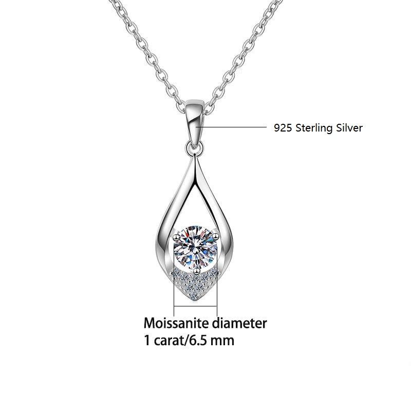 925 Sterling Silver Moissanite 1CT Water Drop Pendant Necklace Clavicle Chain Trendy Multi-Color Light Luxury Senior Ladies