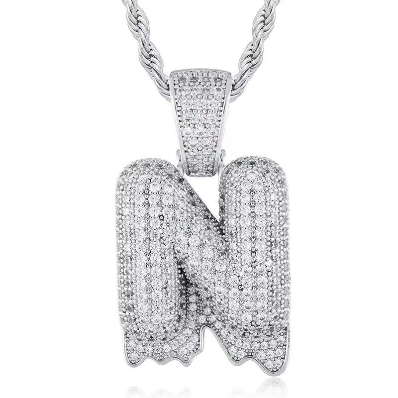 925 Sterling Silver Moissanite Bubbler Initial Bling Hip Hop Pendant VVS Micro Paved Diamond Iced Drip Men's Necklace