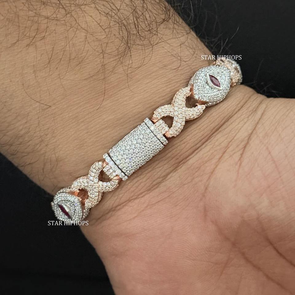 925 Sterling Silver Moissanite Christian Evil Eye Infinity Luxury Gift Bracelet Unisex Design