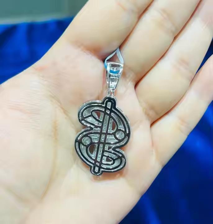 925 Sterling Silver Moissanite Diamond Pendant VS D Color with 1.90 CTW Gold Plated Dollar Sign Main Material Brass