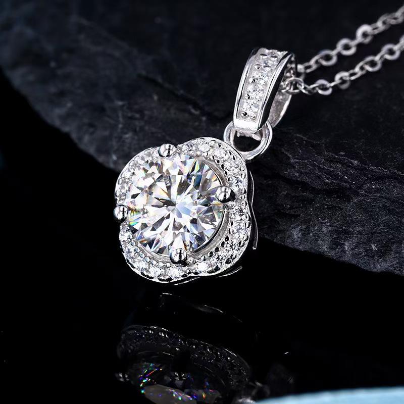 925 Sterling Silver Moissanite Pendant 1ct Round Cut Moissanite GH Color 45+5cm Synthetic Stone Silver Pendant Necklace