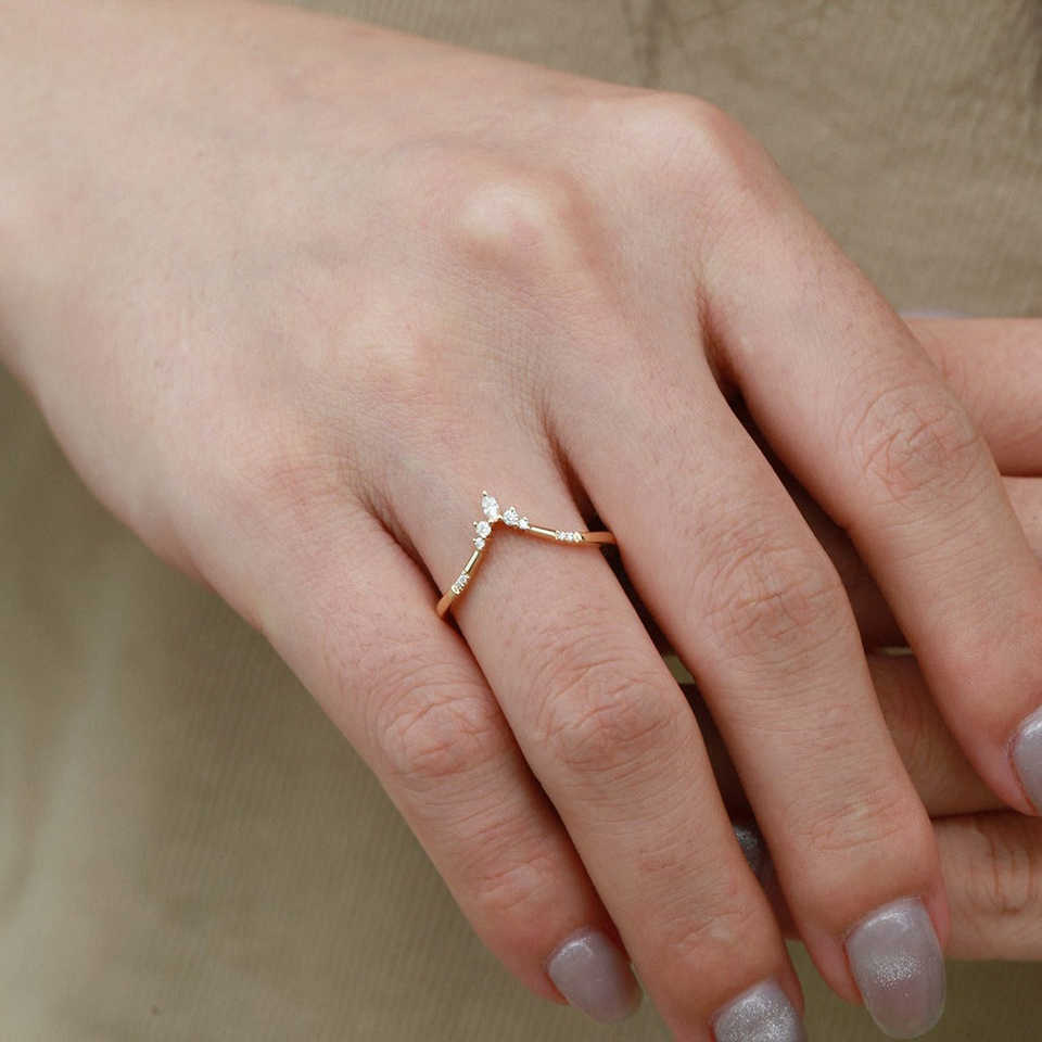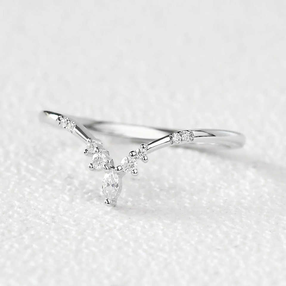 "925 Sterling Silver Moissanite Ring Marquise and Round Cut Minimalist Band Womens Engagement Promise Jewelry"